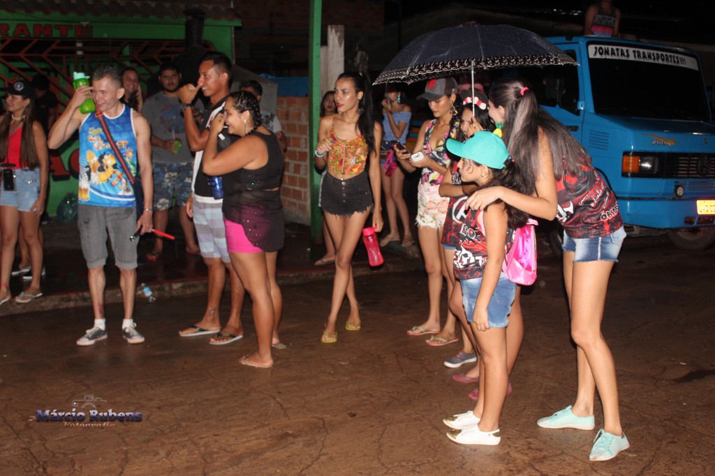 E é justamente pelo fato de ter chovido bastante e ainda na hora da saída do Bloco, estava chovendo, pouco, mas estava e as pessoas estavam ali, nas ruas, nos bares, nas praças… Esperando o Bloco passar.