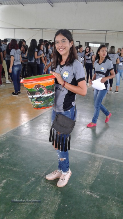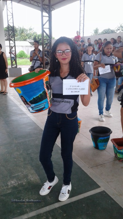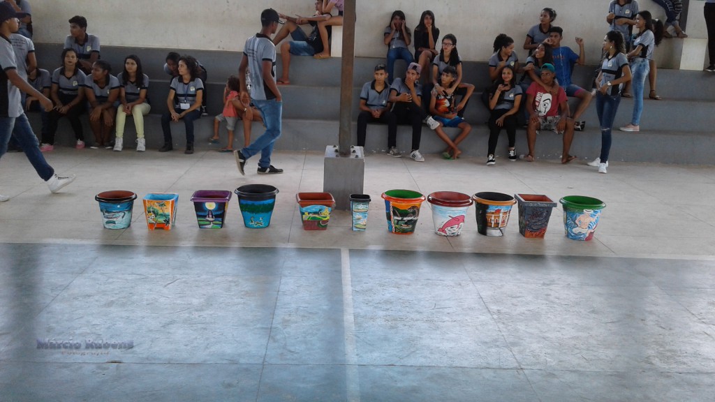 PINTURA EM VASOS E LIXEIRAS NO MAURÍCIO TEM. Aconteceu neste dia 27 de abril na Escola Estadual Maurício Hamoy, no Bairro São Francisco, município de Óbidos o Projeto de Arte e Pintura sobre vasos e lixeiras.
