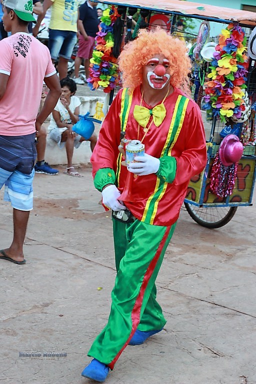 E eles vem vindo. Com colorido, vendendo, vestindo, protegendo a cabeça, o que importa mesmo é qualquer indumentária que identifique que naquele final de tarde, muitos reunidos, irão brincar com o Pai da Pinga.