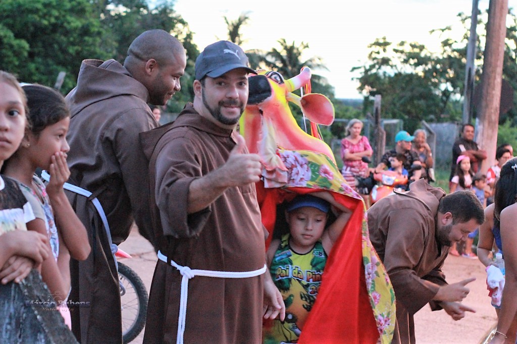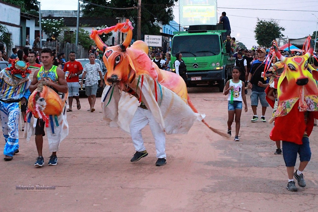E em meio aos arranjos, o Boi que até dá entrevista, de repente se levanta e com gingado eletrizante, vai puxando o Bloco e os brincantes que em alguns poucos instantes foi ficando bem gigante.